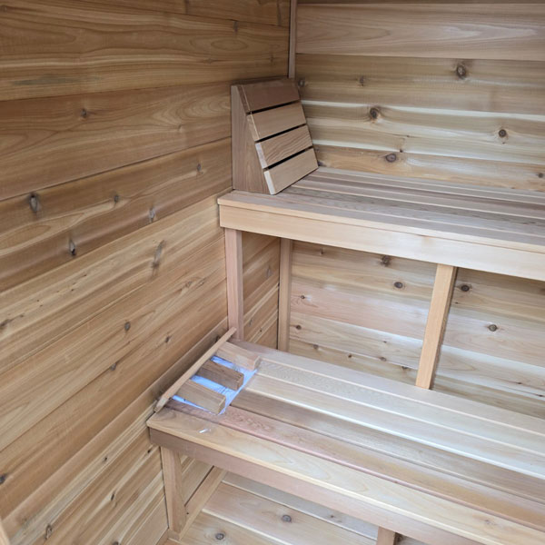 A Cabin Sauna brings all the beauty, functionality and experience in a different style. The outdoor cabin saunas fit perfectly on your deck, backyard patio, or even on your dock. Now you can experience the pleasure of a sauna just when you want it with our stylish red cedar wood saunas that are designed for the cottage or home. Constructed from red cedar with tongue and groove walls and dovetail joints, they’re durable and strong. Available in various sizes, they are supplied with a glass door and optional window.